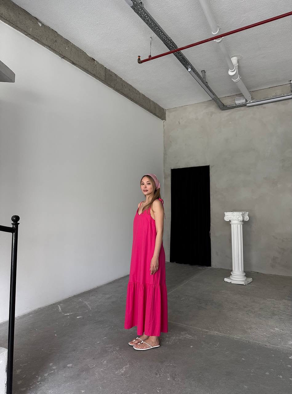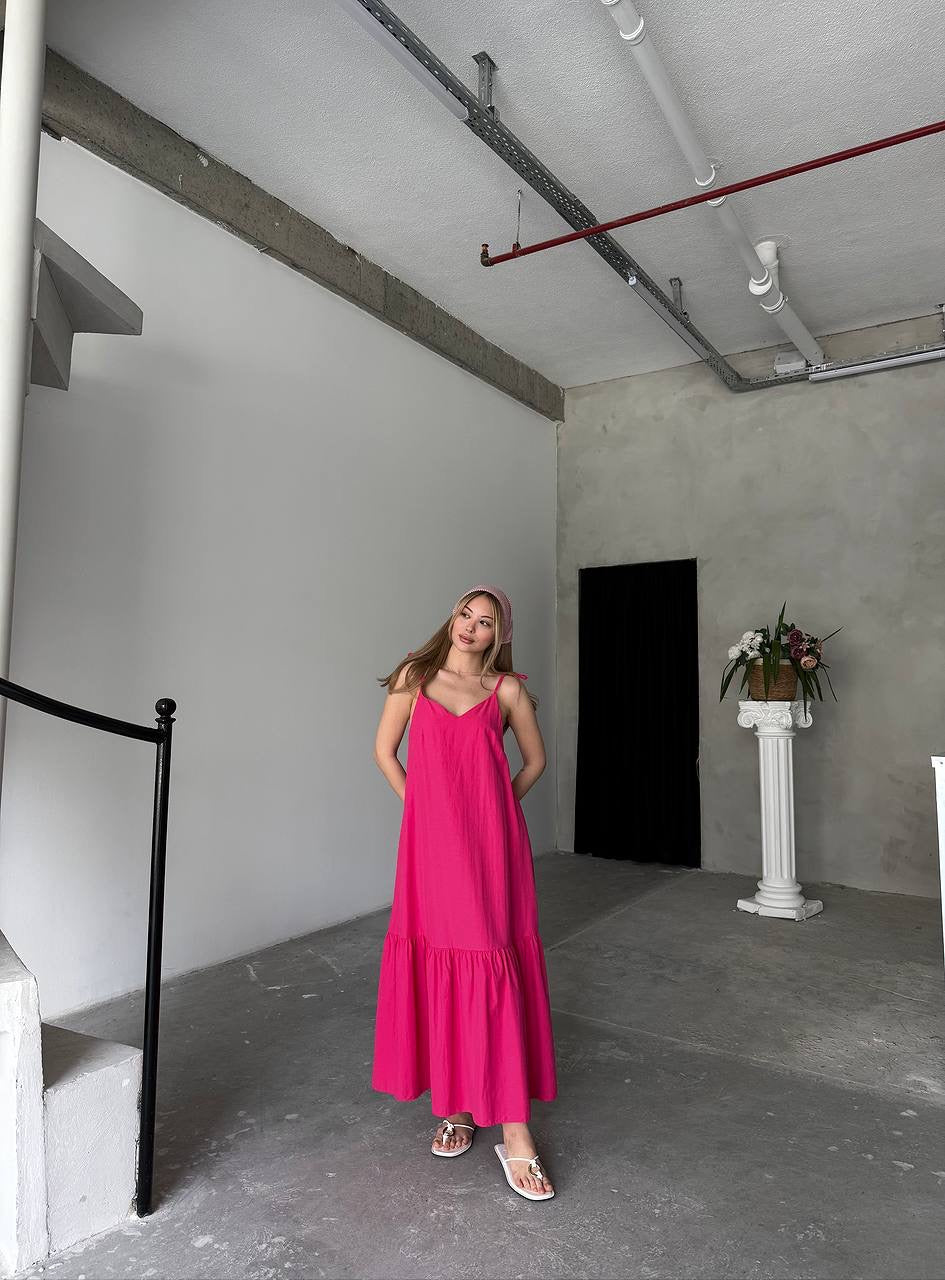 ✨ Luftiges Trägerkleid in Pink – schlicht, bequem und stilvoll zugleich. Der weite, fliessende Schnitt sorgt für maximale Bewegungsfreiheit und ein angenehmes Tragegefühl an warmen Tagen. Die feinen Spaghettiträger und die ausgestellte Stufenform machen das Kleid zum idealen Alltagsbegleiter, der sich mit Sandalen oder Sneakern schnell zum Look stylen lässt.